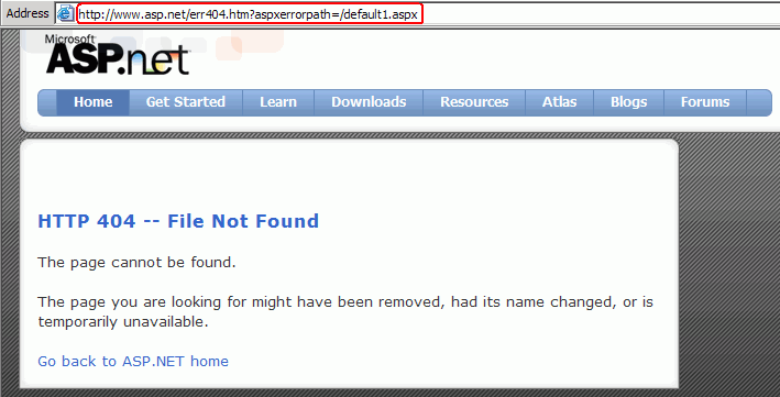 In ASP.NET you are allowed to define a custom error page. When a user tries to access a URL which doesn't exist, ASP.NET changes the URL and redirects to the custom error page. The original URL is passed as a parameter to the new URL.