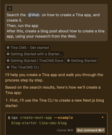 In Cursor, the @Web function is very useful for any situations where recent information, or information that the model has not been trained on is needed! You can also use @Git to compare diffs with the main branch, to generate a nice PR summary.