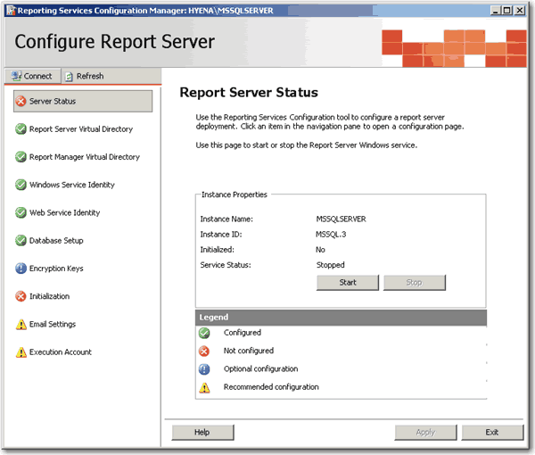 Note: "Report Server Configuration Manager" is only available in SQL Server 2005.