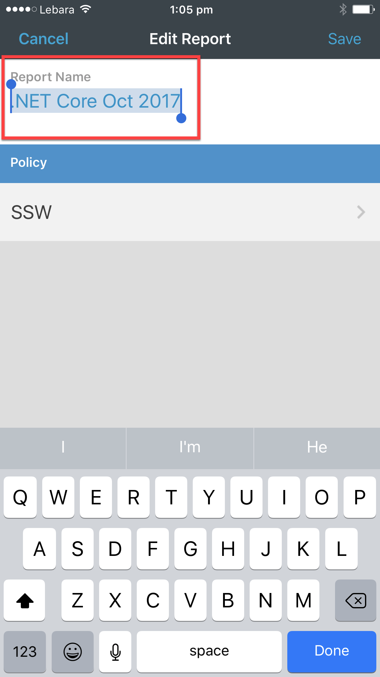 - Re-name your report and then save. You can also change the policy if required. To automatically email your receipts to New, select the SSW policy.