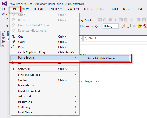 Figure: Edit | Paste Special | Paste JSON As Classes