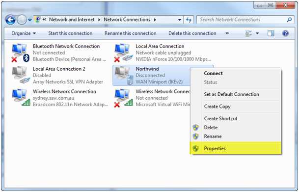 Figure 9 - Right click on your new VPN | Click "Properties"