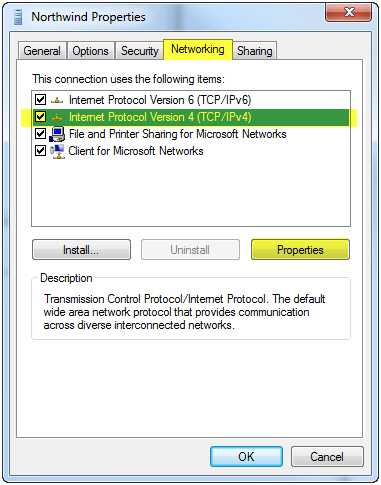 **Figure 10 - Click on "Internet Protocol Version 4 (TCP/IPv4)" | Click "Properties" 13.Click the Advanced… button 14.
