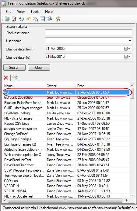 Figure: Yup, Mark wins again! He has the oldest Shelveset from 2006. But he is not the only one!