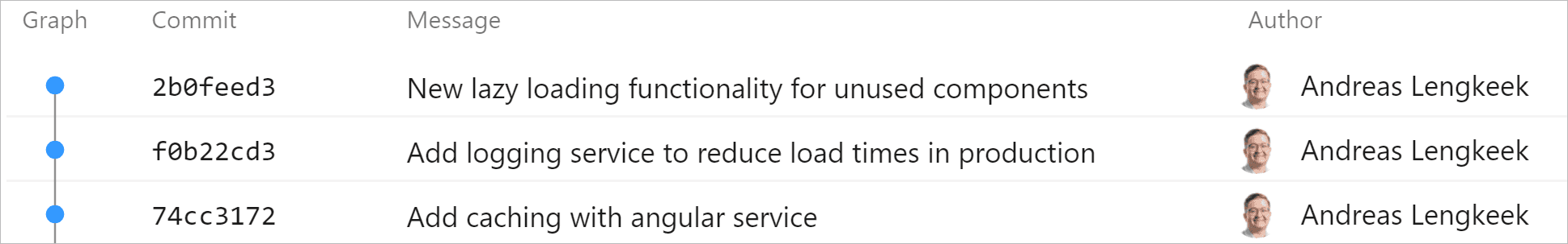 For the same scenario the developer makes sure to commit every separate attempt to reduce load times for their web application. This way, everybody knows what kinds of experimentation was done to solve this problem.