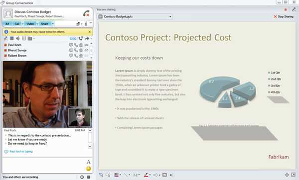 Desktop and application sharing, this feature allows presenters to broadcast any visuals, applications, webpages, documents, software, or part of their desktops to remote participants in real-time, right from Lync.