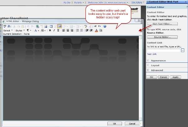 - Data loss is always bad – and Content Editor Web Part gives you many different ways you can easily lose data... you need tread carefully and know the risks!