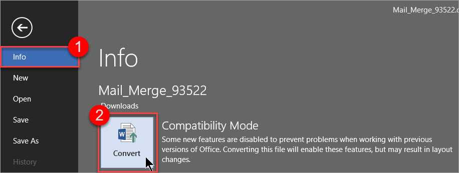 If necessary, go to File | (Info) | Convert to update the Word document to the newest version - this will solve styling issues while not breaking the mail merge