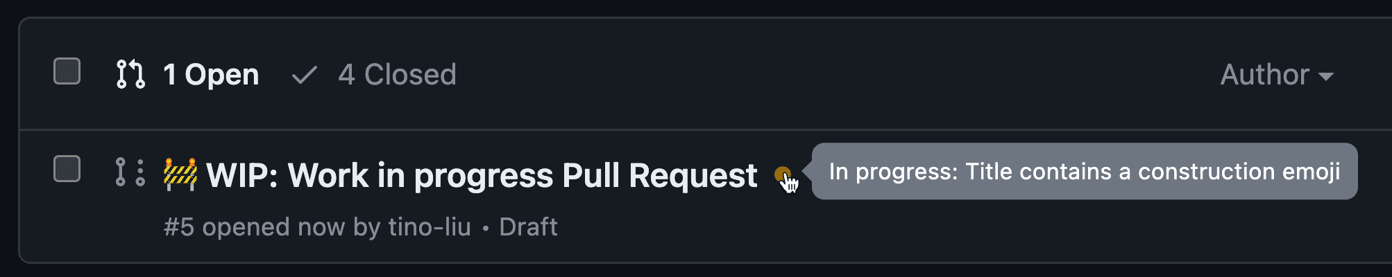 Good example - Pull Request title briefly describes the fix that it has
