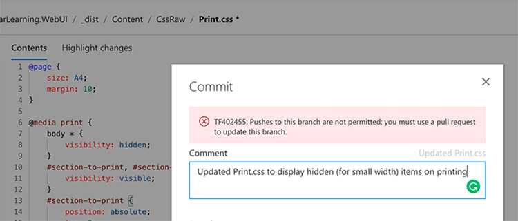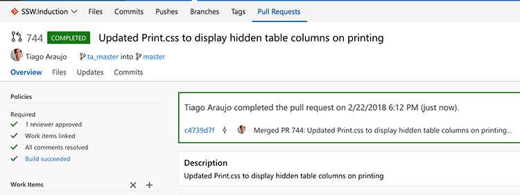 Figure: Providing contributors with an easy mechanism to update their branch helps reduce conflicts if they need to make more changes As PBIs evolve, it's common for their initial descriptions to become outdated or for significant developments to occur that must be recorded for the benefit of the entire team.