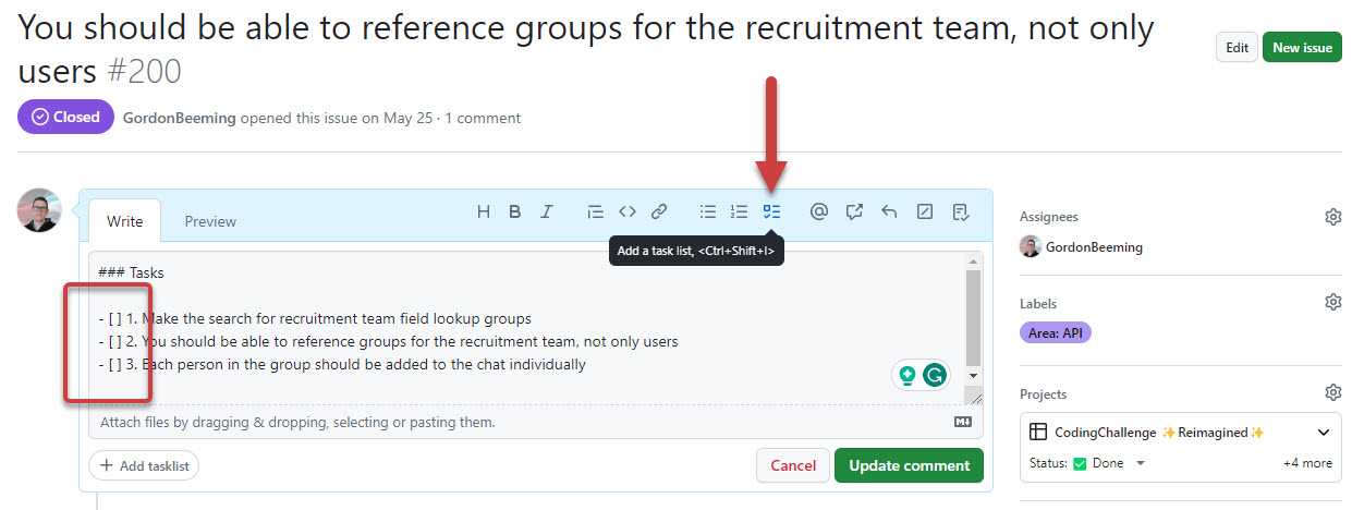 - Edit the Issue or comment