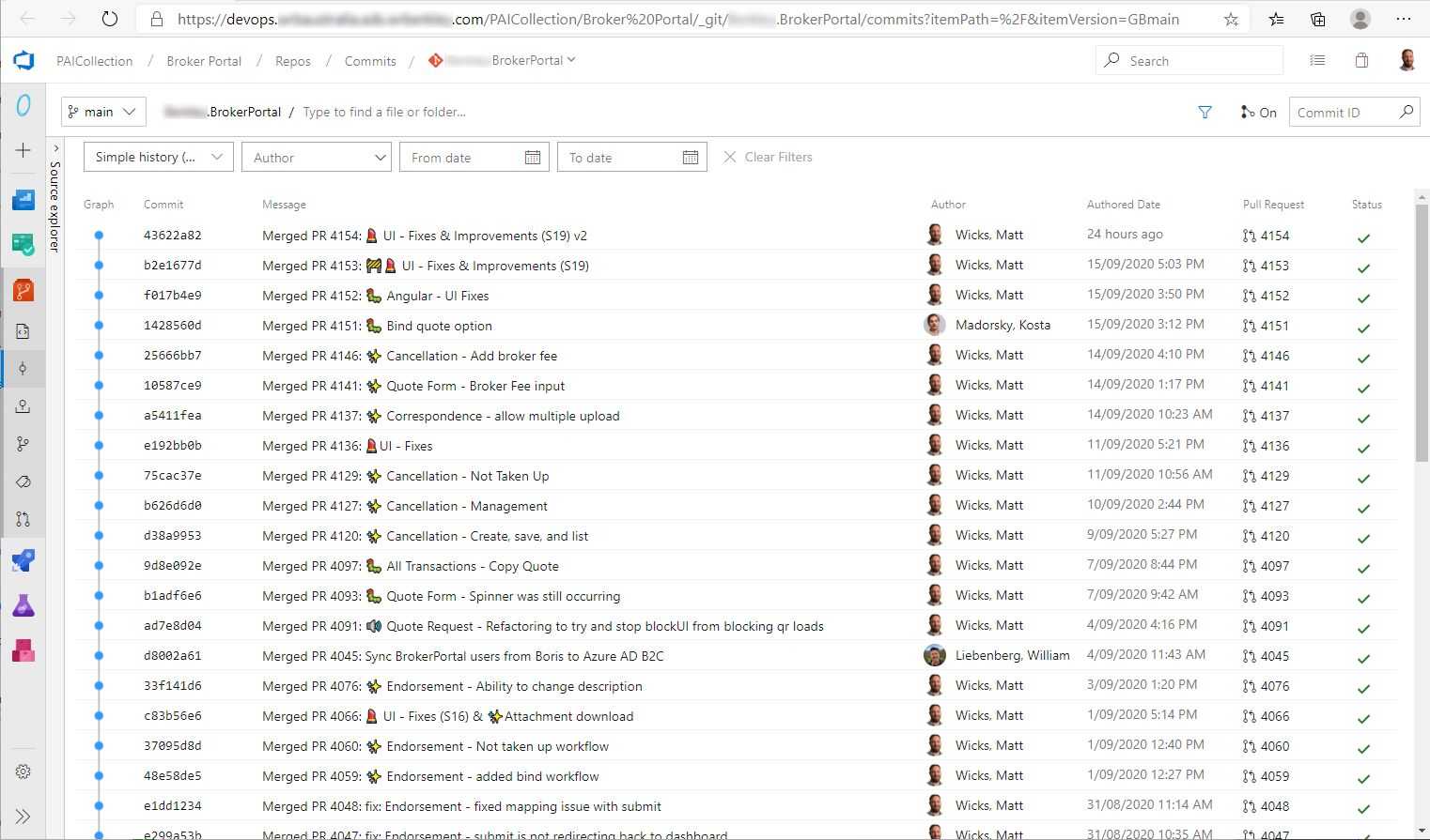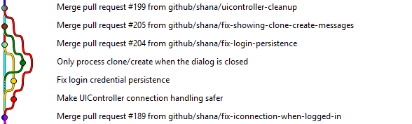 Figure: Bad example - It's hard to follow the changes since there’s noise from all commits on the merged branches Commit Messages