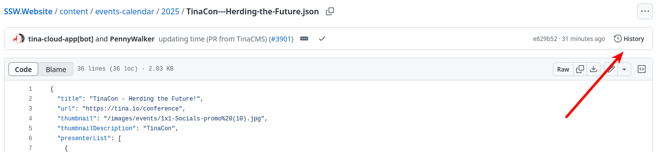 Figure: GitHub history button -