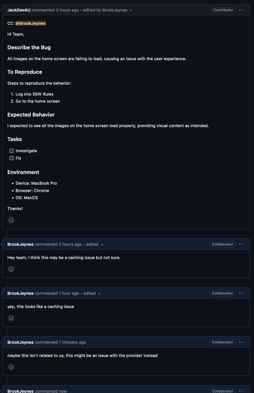 Figure: Issue Forms make reporting bugs easy Some websites use GitHub to manage their content (e.g. SSW Rules). GitHub makes reviewing changes easy through "Pull Requests".