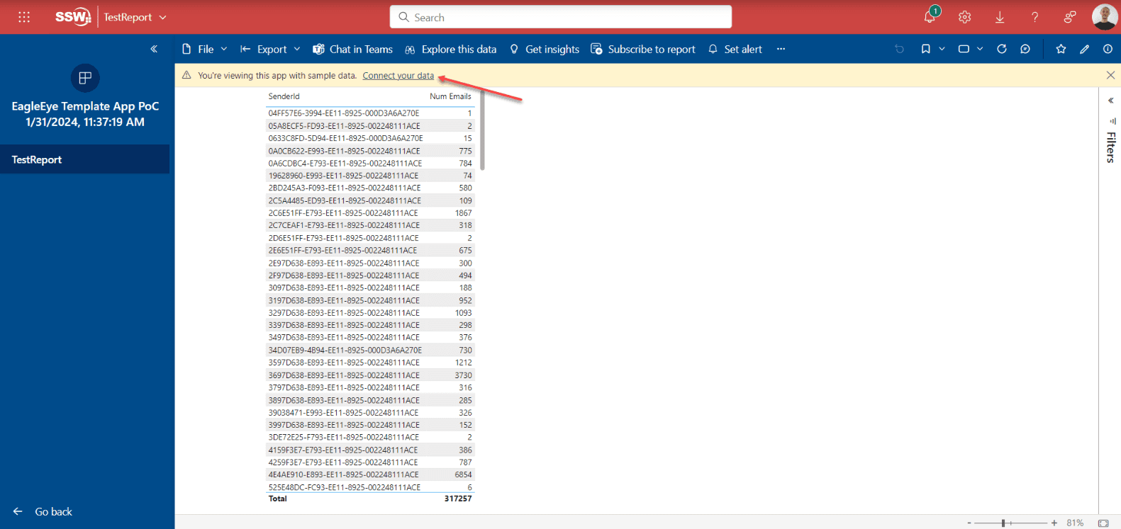 Select "Connect your data" in the message at the top of the page