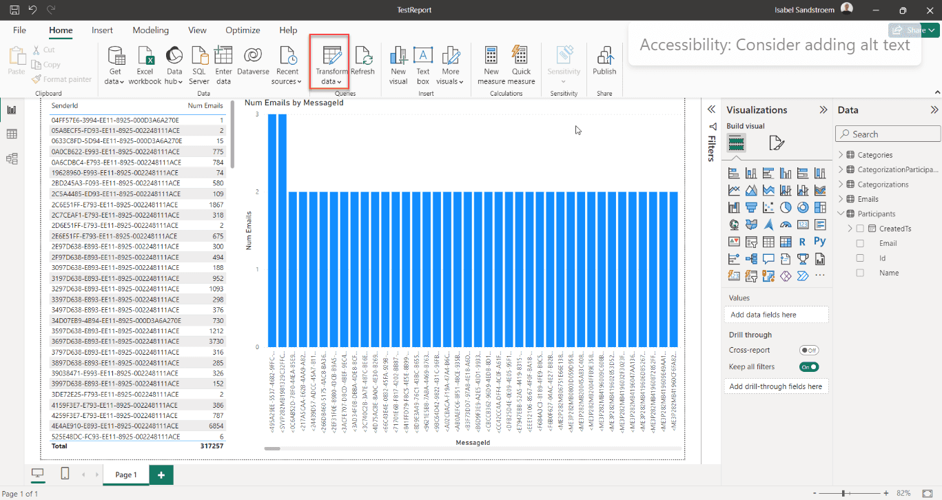 Figure: Good example - We can see that Uly checked more emails than anyone else in the company