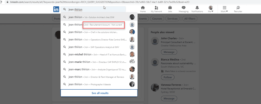 - You can search for people that you do not know using keywords like “NET Developer”, “Sydney”, or “University of Technology”.