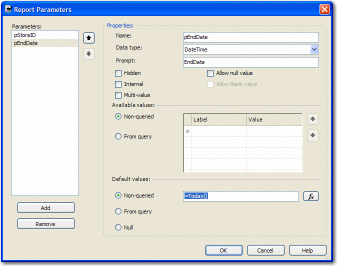 Figure: Report parameters