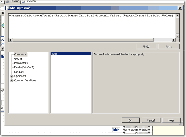 Figure: Specify the filters on your data table and select Globals->User!UserID Note: 'Edit Expression' dialog is only available on RS 2005, but the UserID global variable is available on RS 2000.