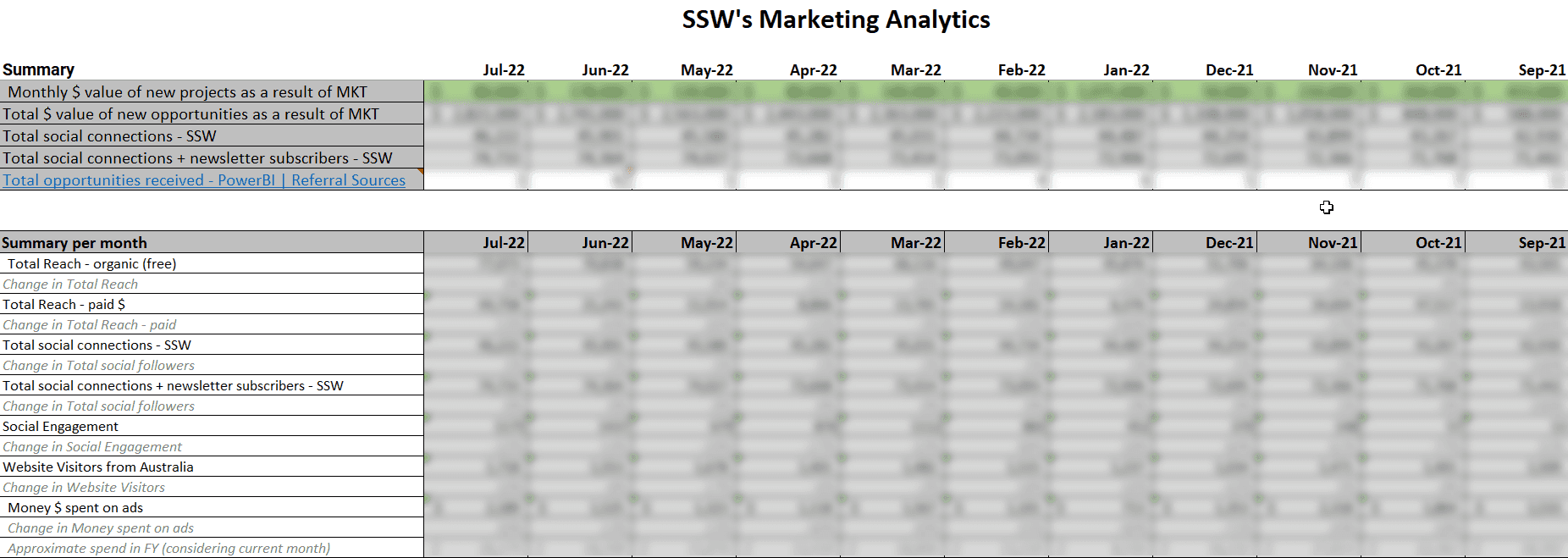 - After this, create a spreadsheet that you can update every month to keep track of your marketing activities.