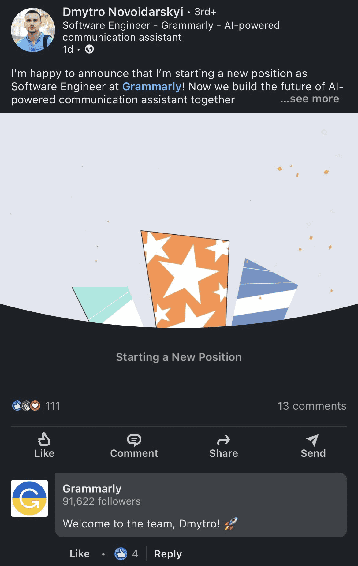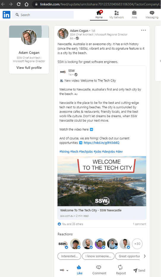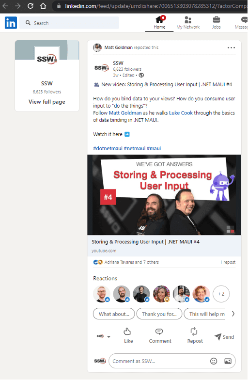 Tip: On LinkedIn, you can leave a comment on a post and reshare a post using that same comment.