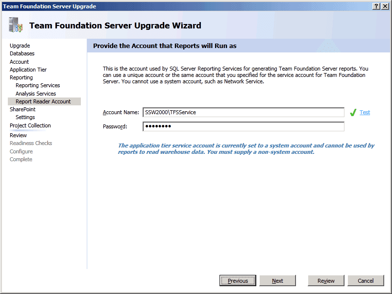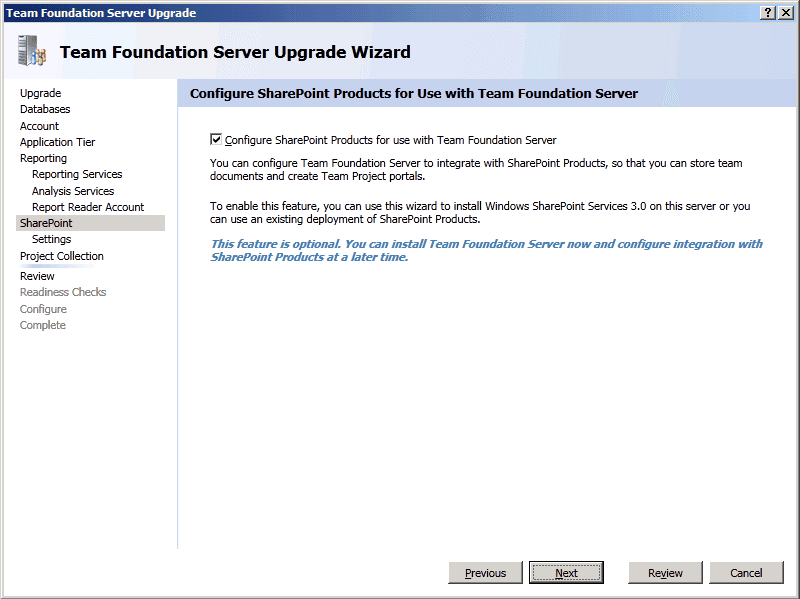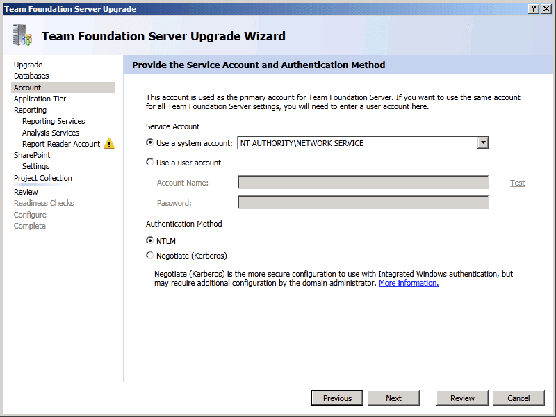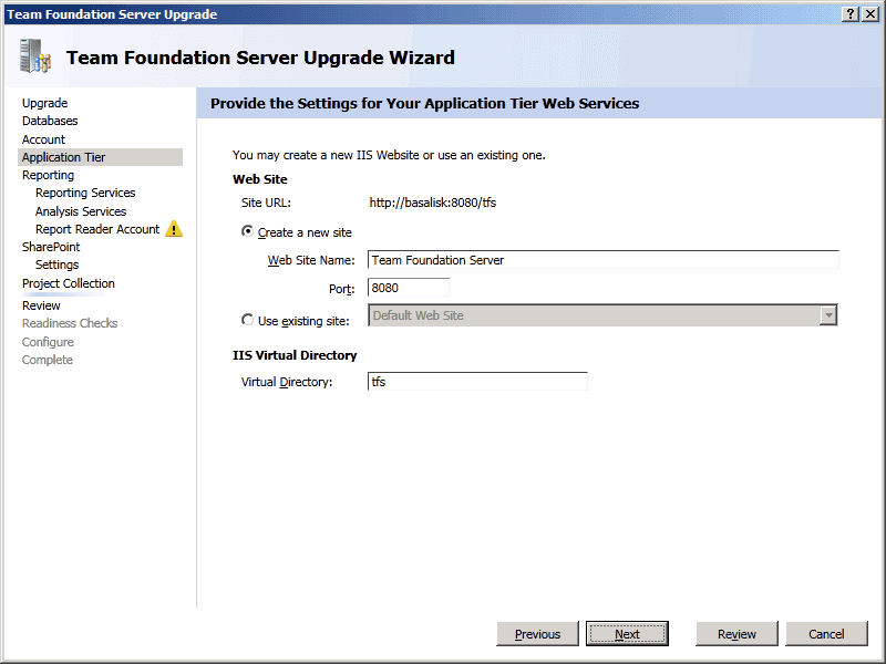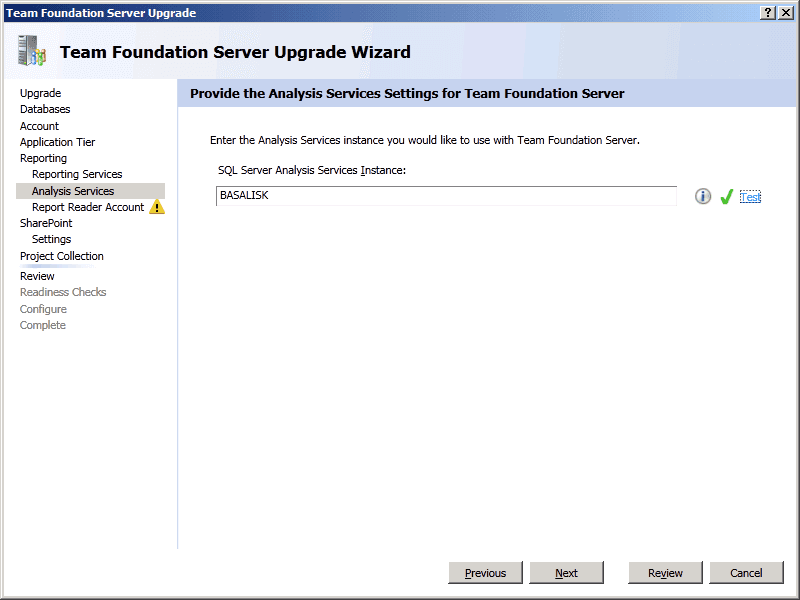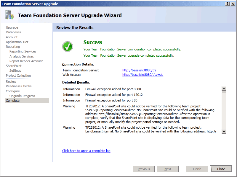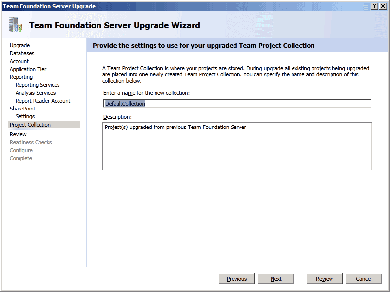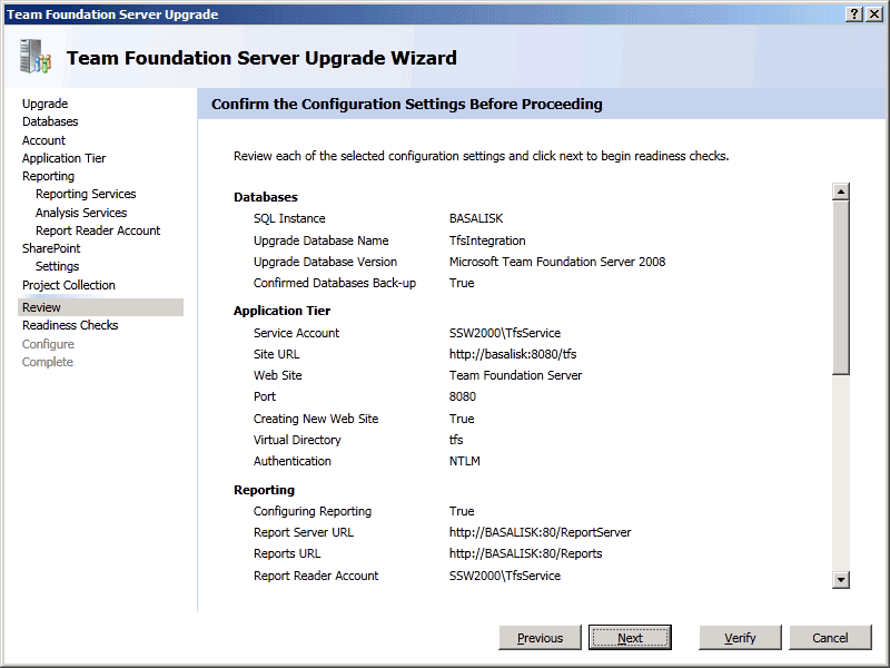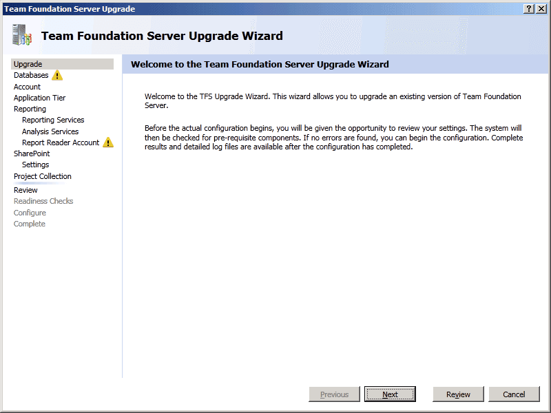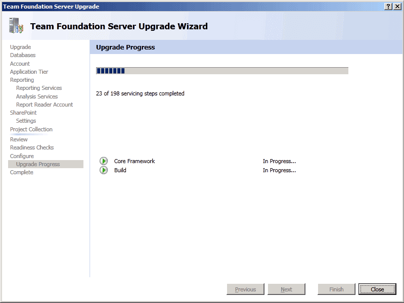 TFS Upgrade Wizard - Configure - Upgrade Process