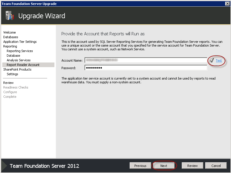 If you’re upgrading TFS 2010 to 2012, it’s highly recommended that you assign sysadmin privileges to the user account that’s doing the upgrade.