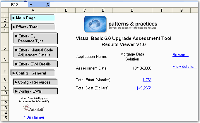 The Visual Basic 6.0 Upgrade Assessment Tool generates two Microsoft Excel 2003 files. This first of these is named MainReport.xls and contains a high level look at the results of the assessment.