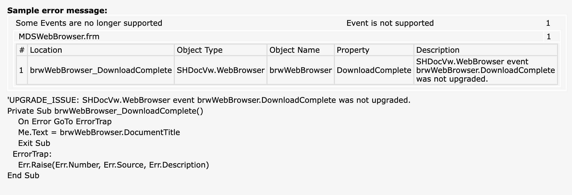 Figure: Visual Basic Upgrade Report