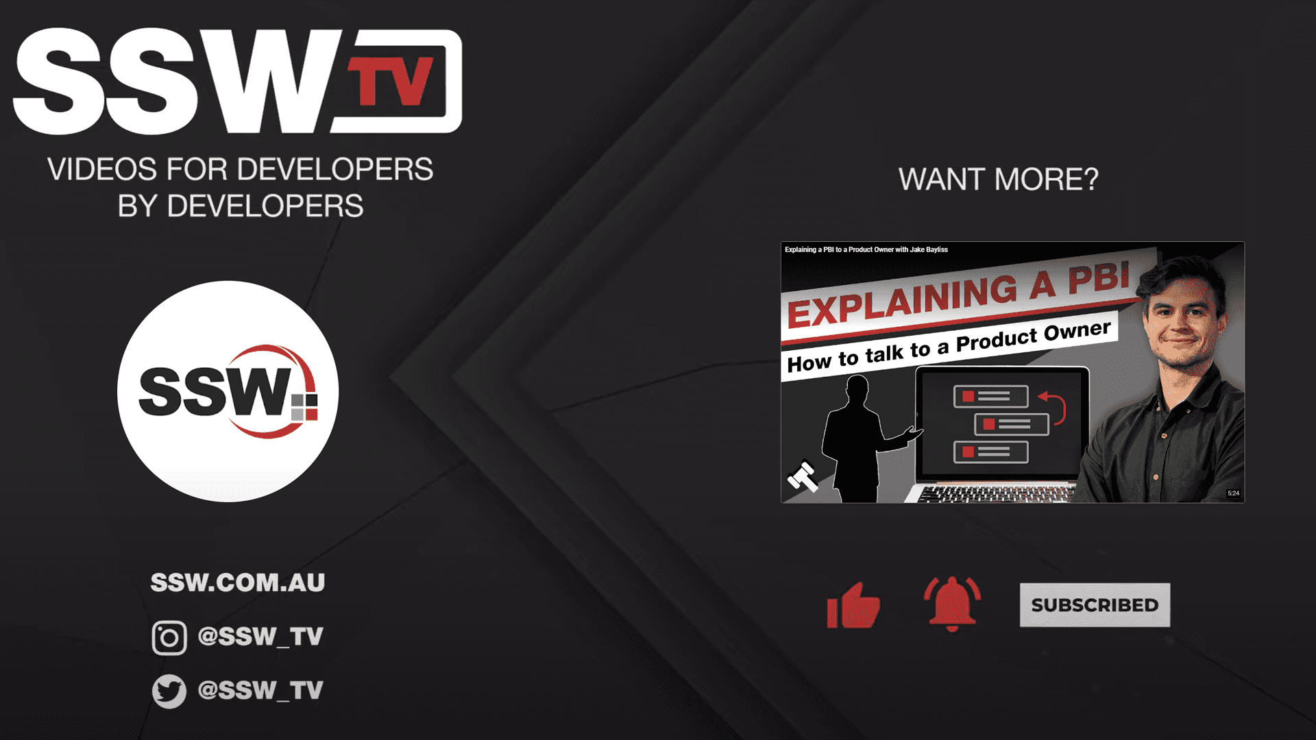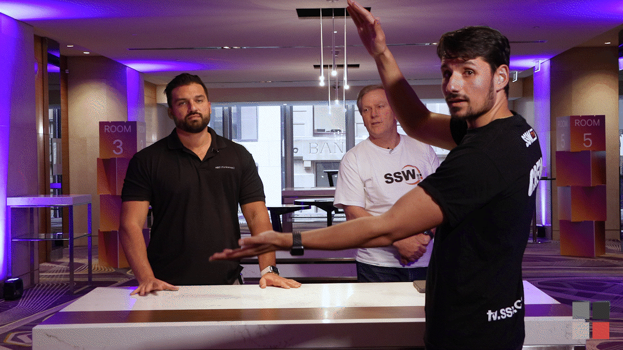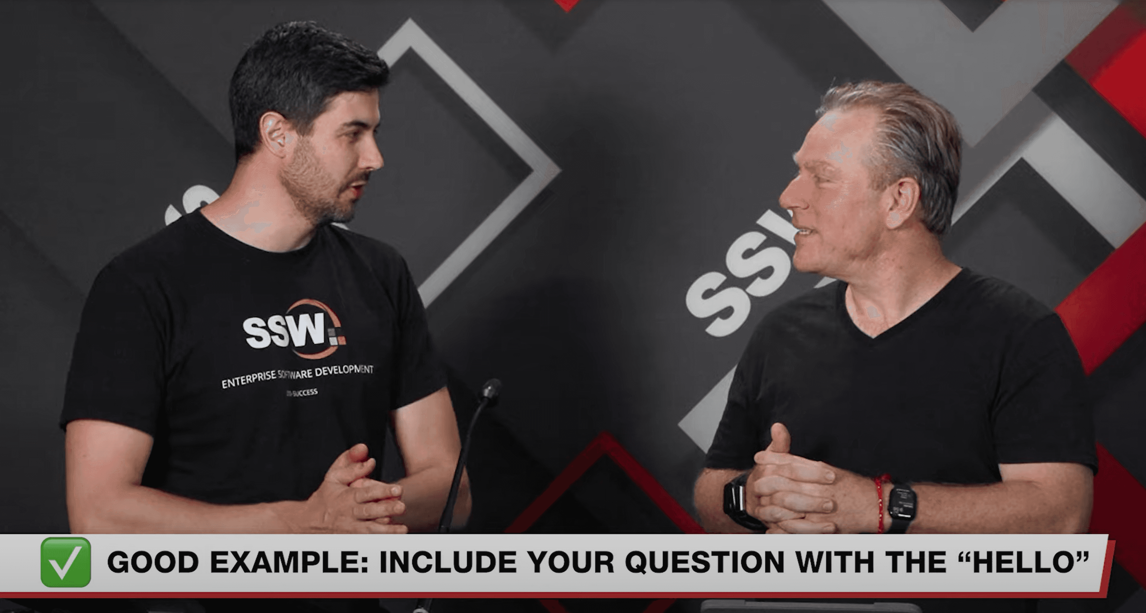 - Briefly introduce yourself. E.g. "I'm David, Solution Architect at SSW"