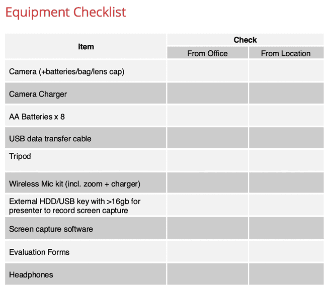 - Keep your camera, microphone, and lighting equipment permanently set up and ready to go. A "plug and play" system minimizes setup time and ensures consistent quality