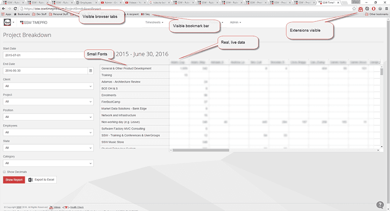 - Browser - Hide the bookmarks bar, set the zoom to 125%. (You can easily get a clean browser by using a guest or incognito profile)