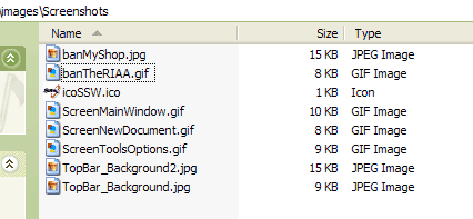 Image Type Prefix Example Banner ban banSSW.gif Icon ico icoSSW.ico Screenshot Screen ScreenCodeAuditorMainWindow.gif
