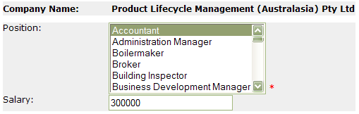Figure: Good Example - Using ComboBoxes - takes up less screen space and the required field indication is easy to see Note: When are single-select list boxes OK?