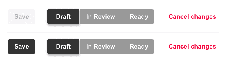 Different button states must have clear and distinct styling that differentiates them from each other and emphasizes them through the creation of a visual hierarchy.