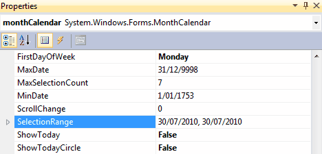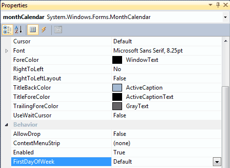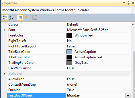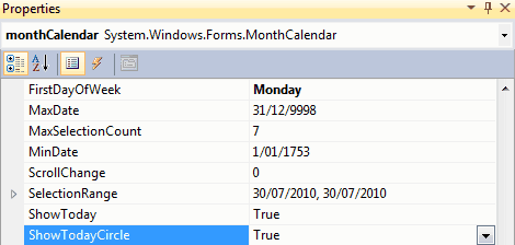 Figure: Good example - FirstDayOfWeek set to Monday It is always good idea to set ShowToday or ShowTodayCircle to true to increase the user experience on MonthCalendar control.