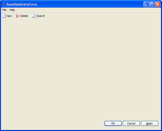 Figure: Base data entry form with menu, toolbar and OK, Cancel & Apply buttons Note: The data entry base form has no heading - we simply use the Title Bar.