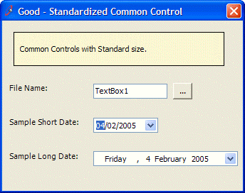 Figure: Good example - Control sizes are all standard and consistent