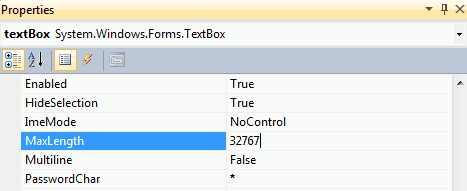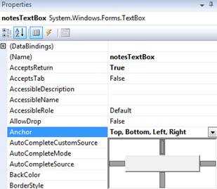 Figure: Good example - The user set PasswordChar to "*" If you add a multiline textbox in a form, you should add anchoring and/or docking properties to allow it to expand when the form is resized.