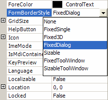 b) Sorting out FormBorderStyle: