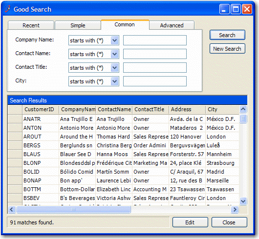Note: Preferred over customers needing to learn prefixes like Google (for example, "city:winkleton"). - Have an "Advanced" tab only for power users for building up a WHERE clause