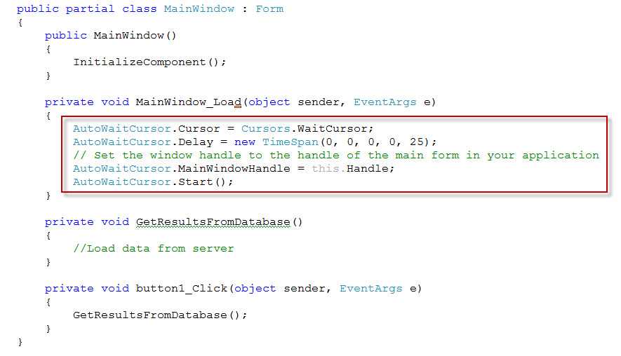 AutoWaitCursor Class automatically monitors the state of an application and sets and restores the cursor according to whether the application is busy or not. All that required are a few lines of setup code and you are done. See this great blog on how to use AutoWaitCursor. If you have a multithreaded application, it won't change the cursor unless the main input thread is blocked. In fact, you can remove all of your cursor setting code everywhere!