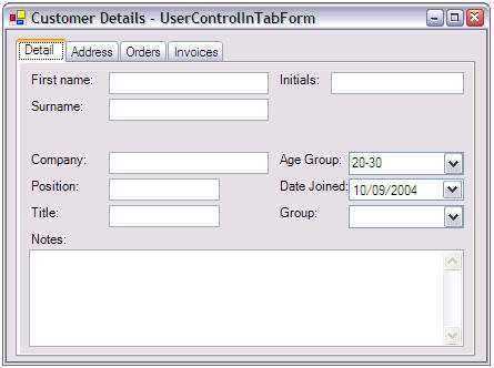 Figure: Good example - The Address User Control is repeated Exception: User controls can be made for tab pages (e.g Tools | Options) and search pages. This allows the breakdown of complex forms, and development by different developers.