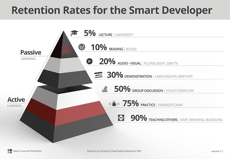 Over the years, SSW has trained thousands of developers and we have found that the best way to learn is through mentorship. Mentorship is when an experienced developer teaches and codes with their mentee. By working closely together on a regular basis they are able to impart their knowledge and experience into the mentee.
