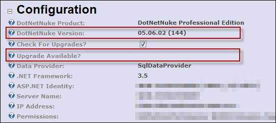 - Log in to the DNN site and navigate to "Host", then "Host Settings". You will see that the site is running the newest version of DNN and that there are no upgrades available.